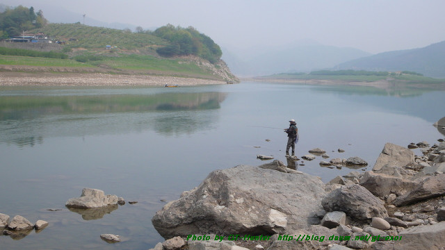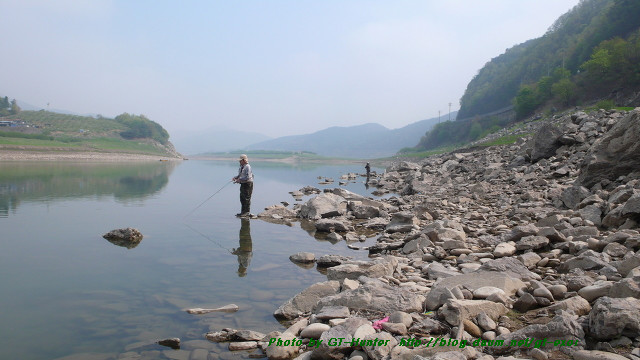 なので、結構下流へ移動・・・。岩場と瀬を狙ってみました。
