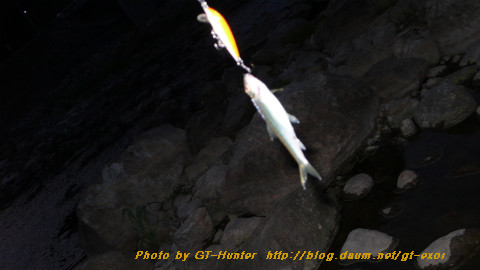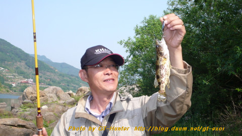 Jさんがついに1匹釣りました。小さいです。望んでいるのはその2倍サイズですが。