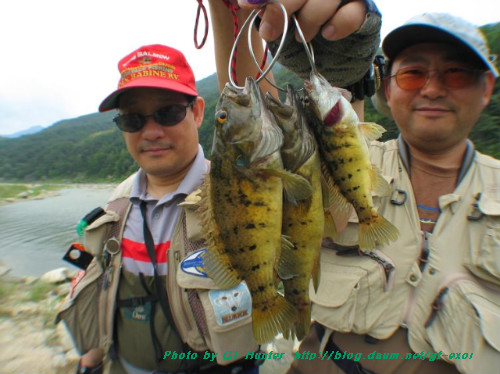 佐野さんの釣ったオヤニラミを遅く到着したJUNGさんが優れもので撮ってくれました。コンペックトデジカメにコンバーターレンズを付けるんじゃないですか。この頃はこんなに小さな光学機器が発展しているみたいです。