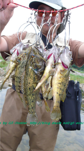 私も久しぶりにその川に足を濡れながらルアーを投げてみるとオヤニラミがストリンガー一杯になりました。